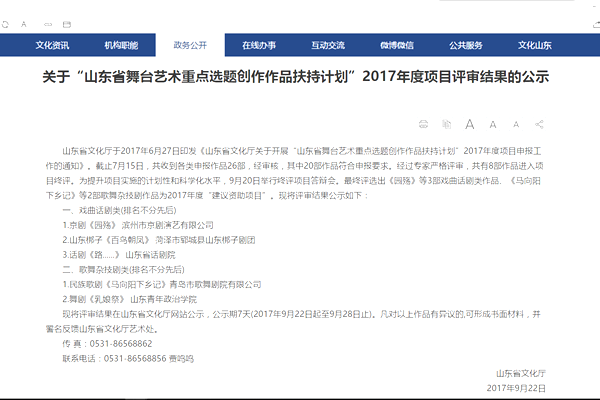 近日,山东省文化厅对“山东省舞台艺术重点选题创作作品扶持计划”2017年度项目评审结果进行了公示,我校舞蹈学院的舞剧《乳娘祭》成功入选。