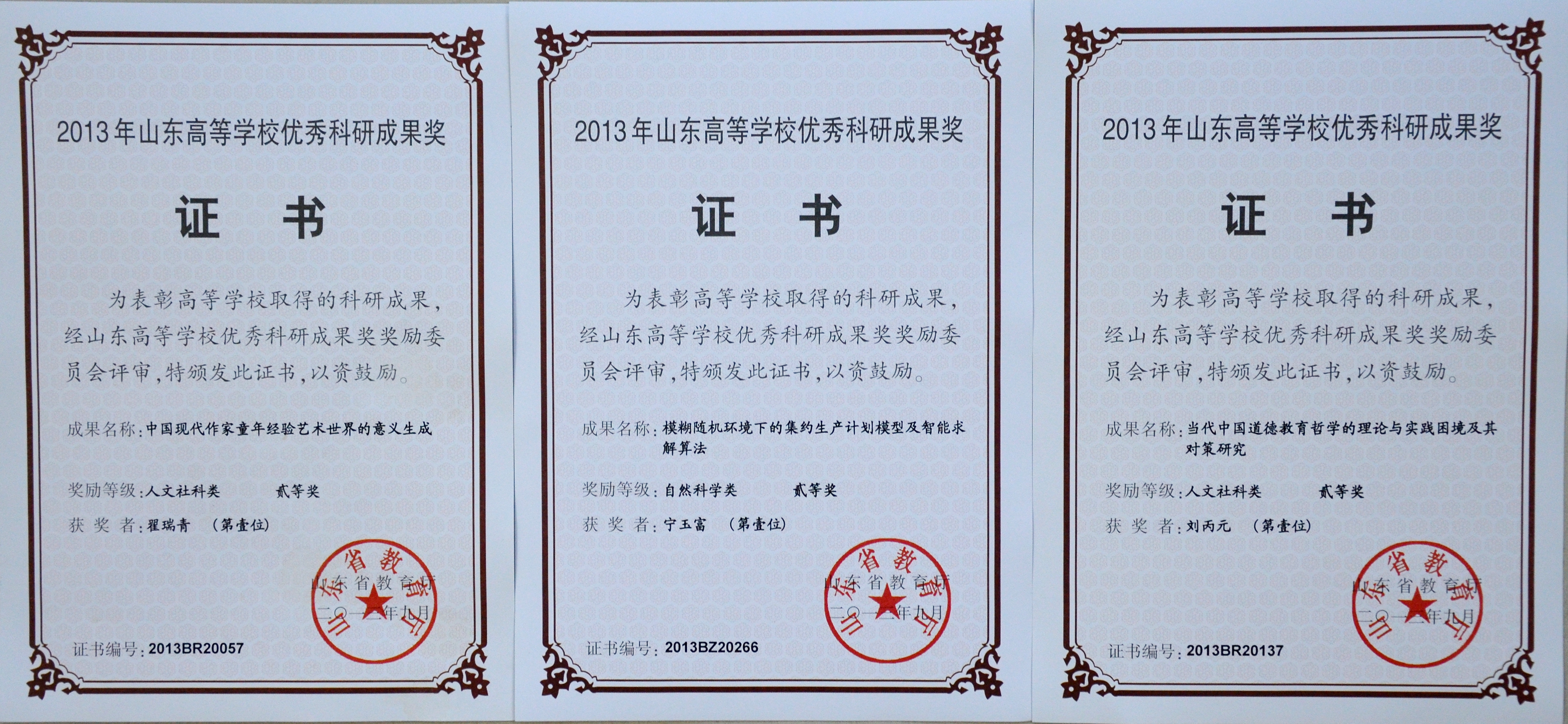 日前,由山东省教育厅组织的2013年山东高等学校优秀科研成果奖揭晓,我校六项成果获奖。