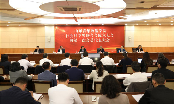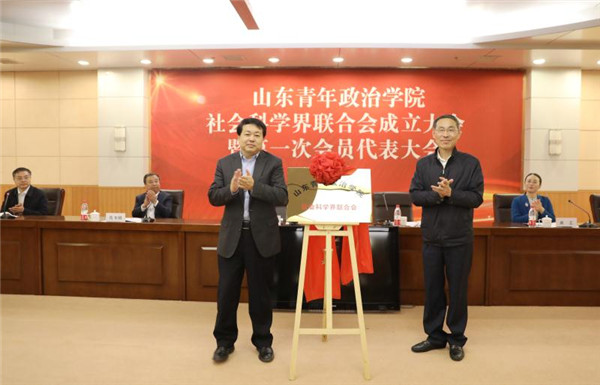 会上,刘致福和鹿林共同为“山东青年政治学院社会科学界联合会”揭牌。曲艺宣读了山东省社科联《关于同意山东青年政治学院社会科学界联合会为山东省社会科学界联合会团体会员的批复》,高峰宣读了《中共山东青年政治学院委员会关于成立山东青年政治学院社会科学界联合会的通知》,陈雨海代表大会筹备组作《山东青年政治学院社会科学界联合会筹备工作报告》。