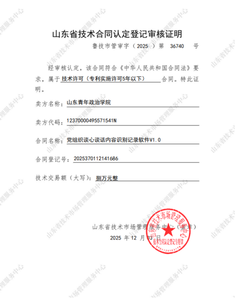 登记机构: 山东省技术市场管理服务中心