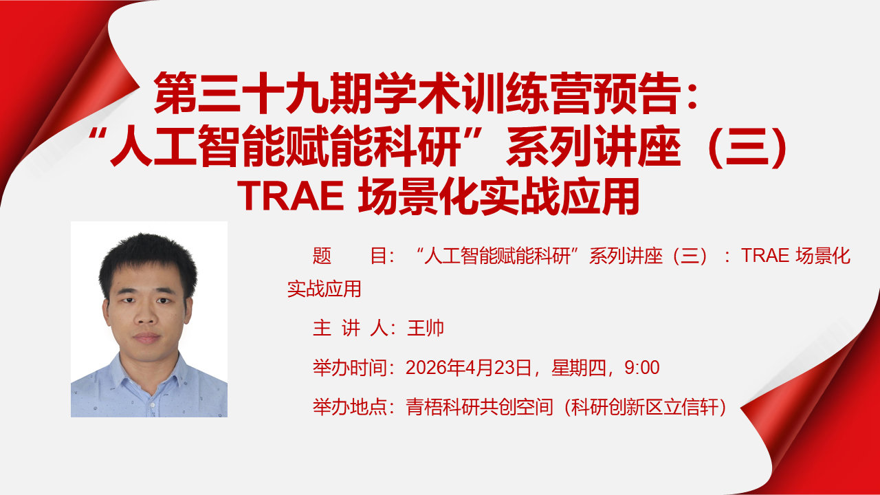 题 目:“人工智能赋能科研”系列讲座(三):TRAE场景化实战应用