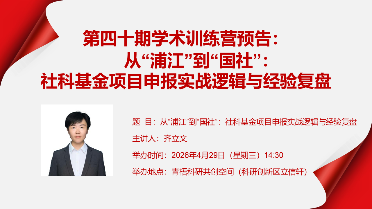 题 目:从“浦江”到“国社”:社科基金项目申报实战逻辑与经验复盘